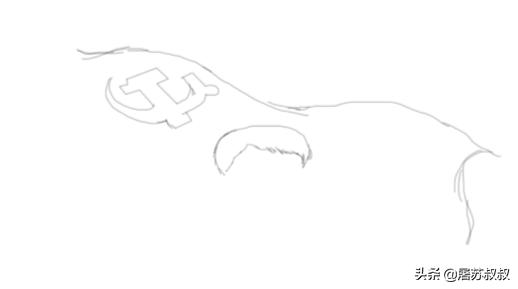 3、画好党旗之后我们再画出儿童的头发轮廓线,如图所示: