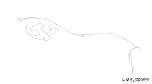 2、再在飘起来的党旗上面再画出党徽图案,如图所示: